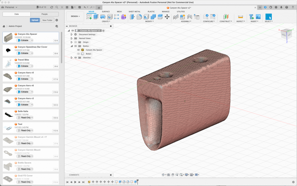 Secondly, In the past with nearly all of my DIY/3D printing projects, I have either used photo representations and modeled my 3D/digital object using them as a reference, or pulled out a set of calipers and did the same. I anticipated that with a 3D scanner, all of this would change. I would simply be able to pull the scan into a tool like Fusion 360, and within a few minutes have a digital version I could dynamically adjust/edit. I couldn’t have been more wrong 🙂 The same technology which makes these devices really accurate and valuable is the technique they use for representing the physical objects which are point clouds. These point clouds in turn highlight and show even the minutest variables of the physical item. This includes paint height differences or even dirty marks. These differences then make the “mesh” (the output from the software) actually quite difficult to work with when you expecting a nice flat surface (as you can see from the height differences in the images/workflow below).